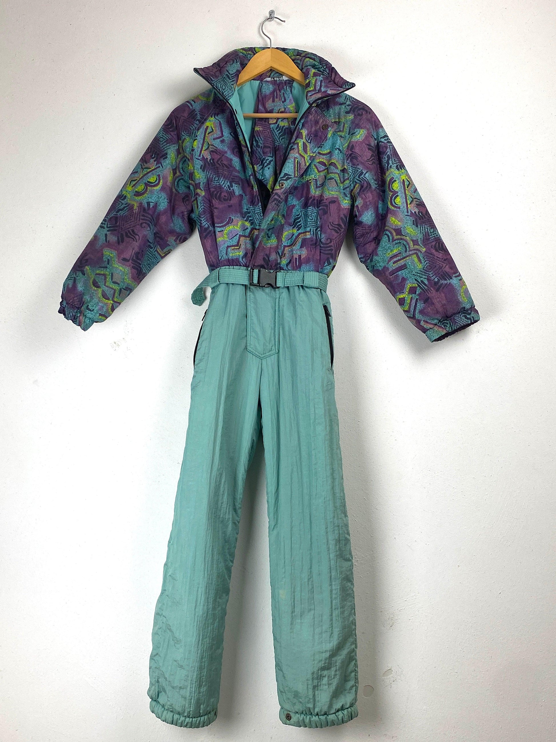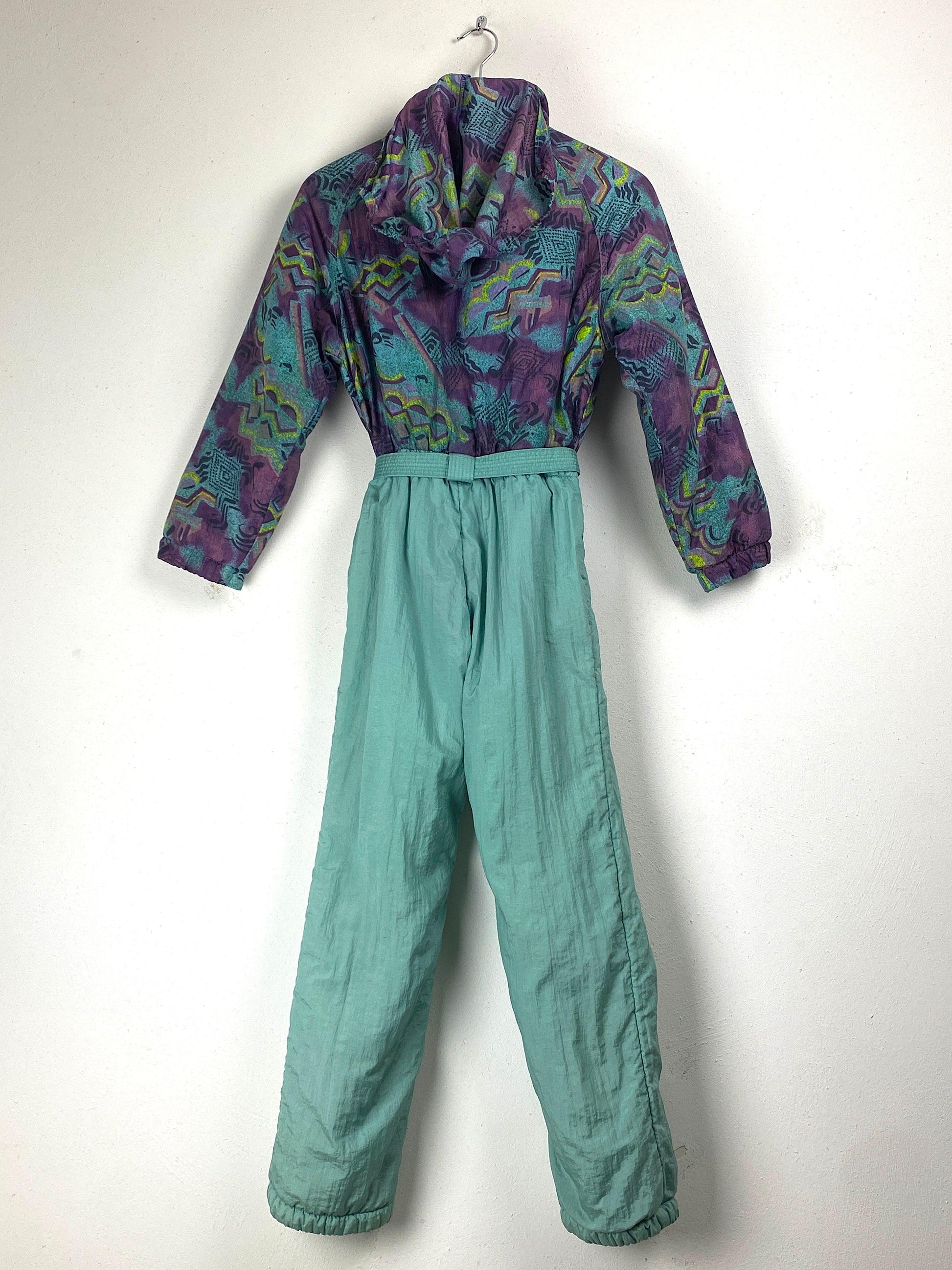 Dieser Vintage-Skianzug ist gefüttert und daher für den Einsatz auf der Piste geeignet.