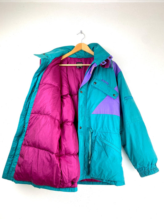 Découvrez le manteau d'hiver rétro parfait sur vintageskipakennl.nl et donnez une touche unique à votre garde-robe d'hiver. Nos vestes vintage de marques de sport connues réunissent un design coloré et intemporel, idéal pour une tenue de ski inoubliable ou un look de fête hivernale.
